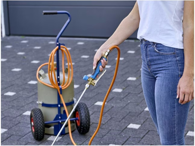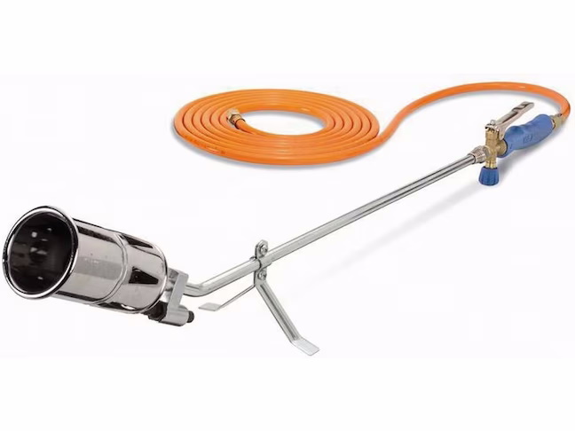Ob Sie nun Unkraut zwischen Gehwegplatten loswerden möchten oder Ihrem Grill ordentlich Feuer machen wollen – schneller und komfortabler als mit diesem Abflammgerät ist das kaum möglich. Es besitzt einen besonders breiten 60-mm-Spezialbrenner, der eine breite Fläche gleichmässig bei einer Arbeitstemperatur von 1’800 °C bearbeiten kann. Ein Sparflammengriff sorgt dafür, dass Sie nicht unnötig Propangas verschwenden und auch mit geringerer Power arbeiten können. Die Piezozündung erleichtert den Start in Sekundenschnelle und der ausladende 5-Meter-Schlauch garantiert Ihnen eine hohe Bewegungsfreiheit. Zwischendurch können Sie das Abflammgerät auf dem fest installierten Ablegeständer abstellen. Bitte denken Sie daran, dieses Gerät mit einem Propan-Druckregler DR 114 zu ergänzen.